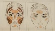 - Utilizzare la tonalità n°4 nell’incavo sotto gli zigomi sfumando verso la mandibola. Creare un’ombreggiatura lungo i lati del mento per ammorbidirlo otticamente. Se necessario delineare infine i lati del naso sfumando verso le sopracciglia per renderlo più sottile.